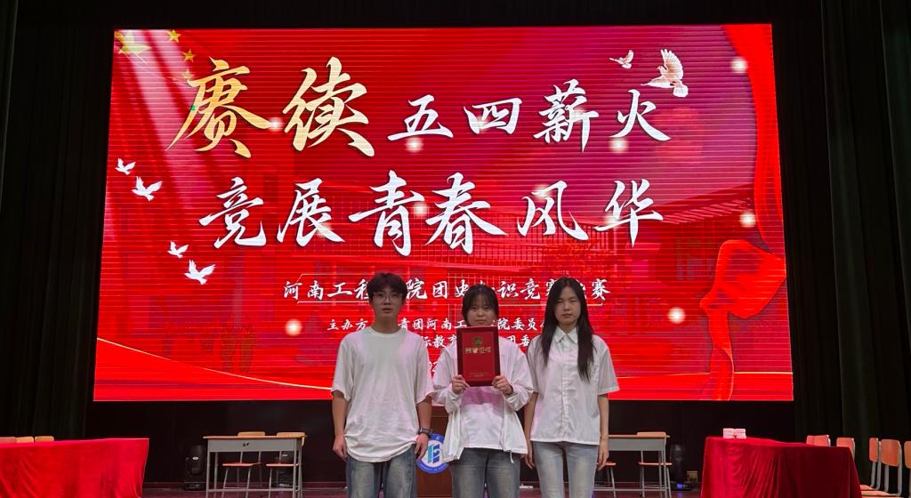 5月14日下午,由校团委主办、国际教育学院分团委承办的“赓续五四薪火,竞展青春风华”河南工程学院团史知识竞赛决赛在西区创新创业礼堂隆重举行,我院派代表队参赛。